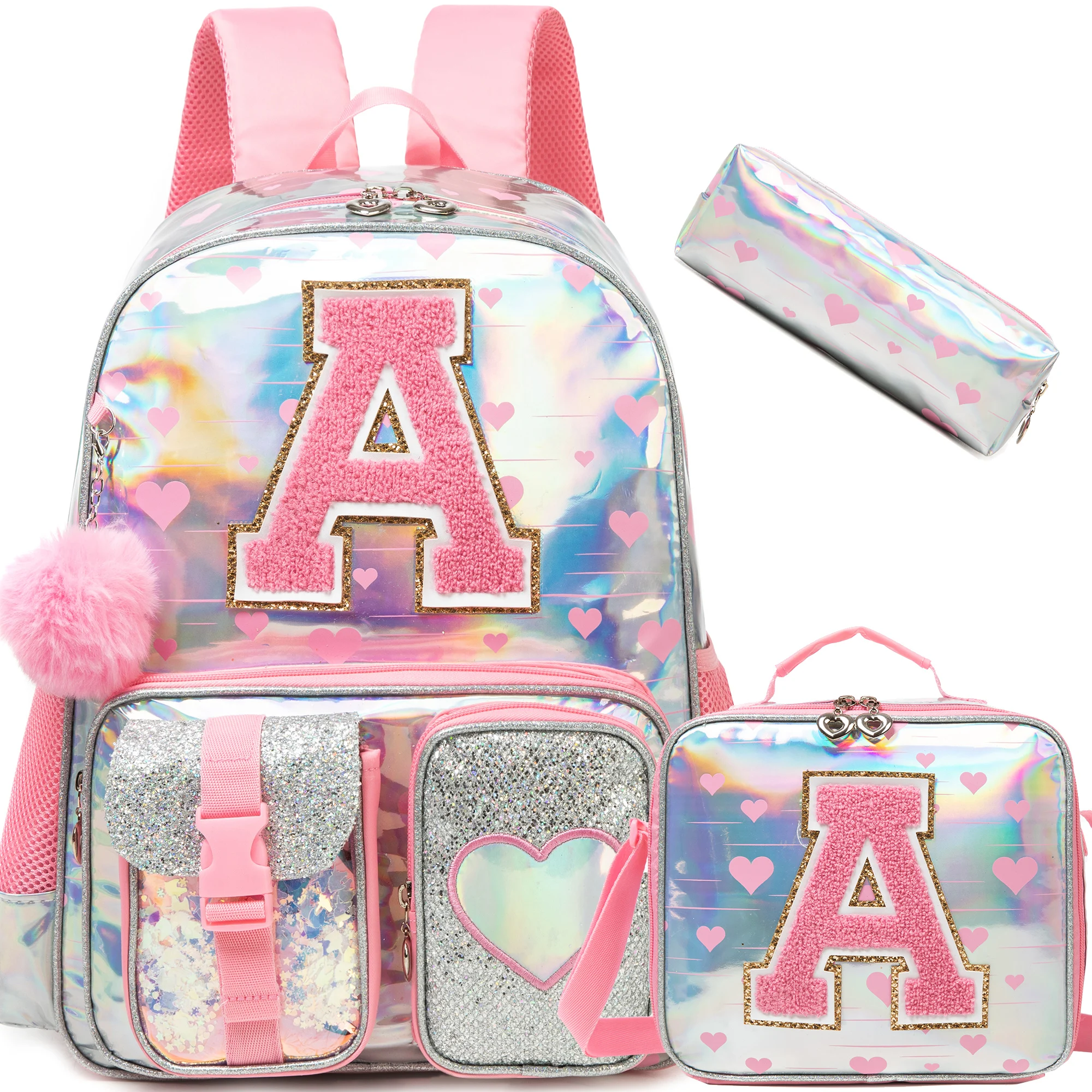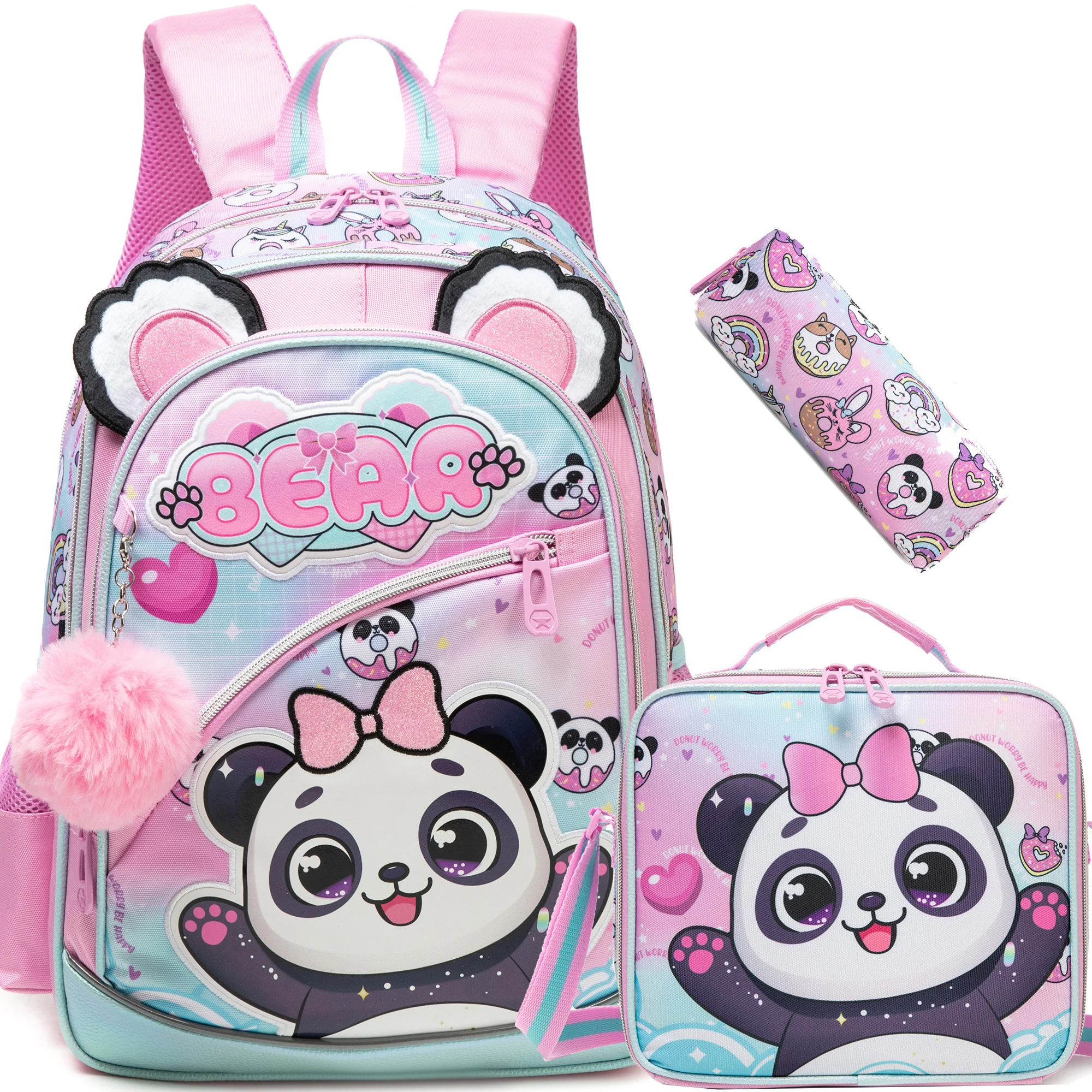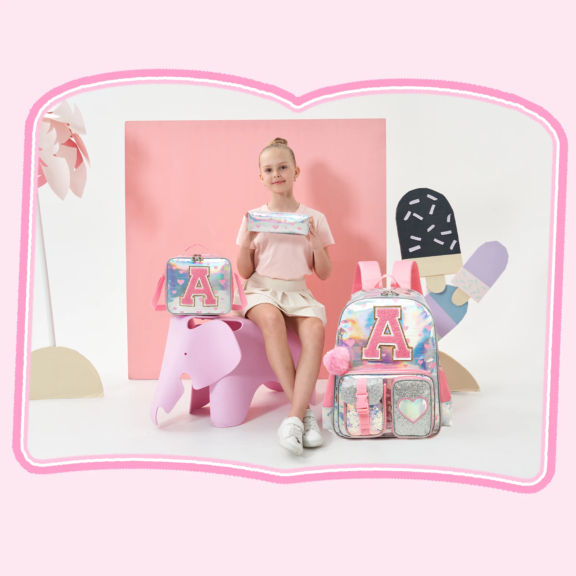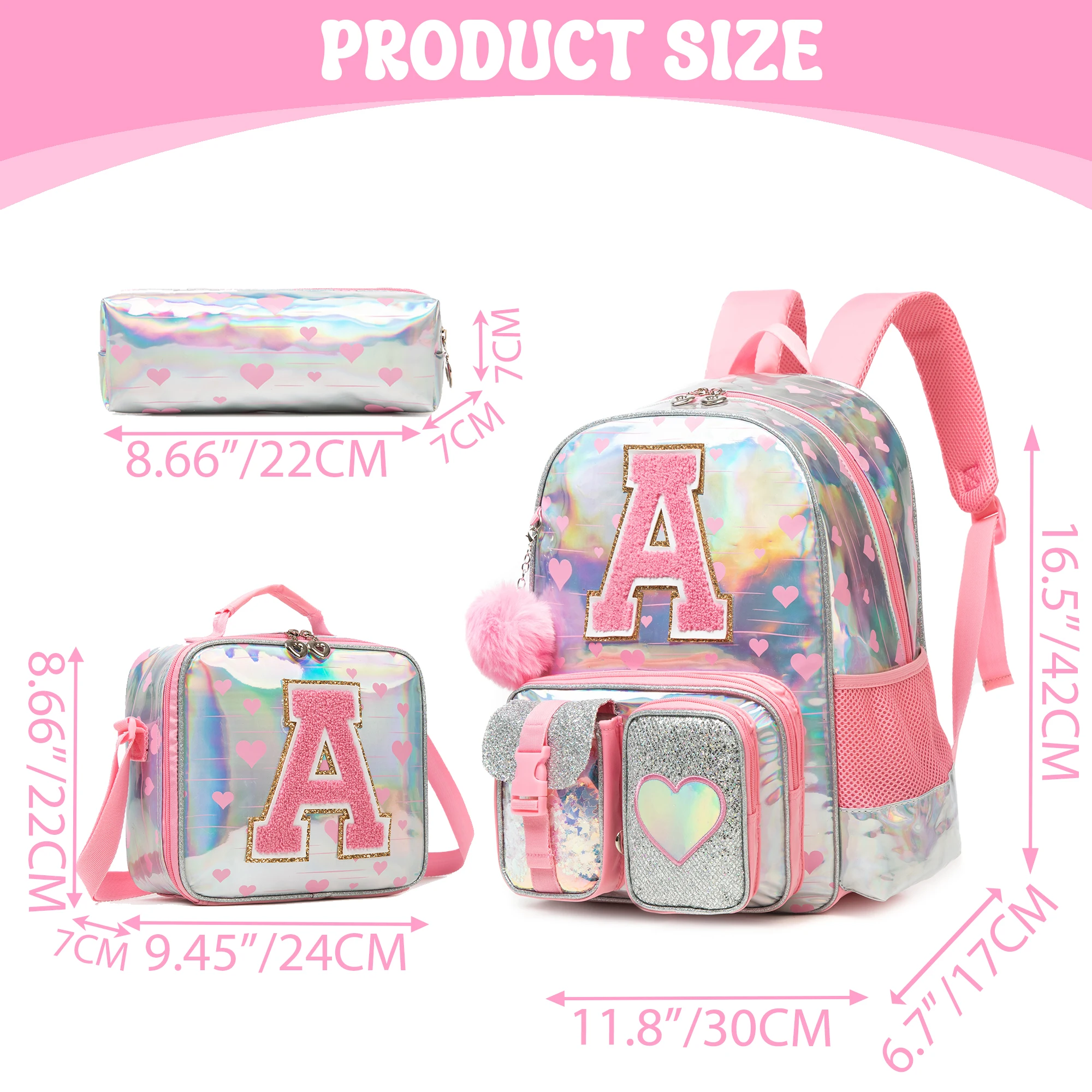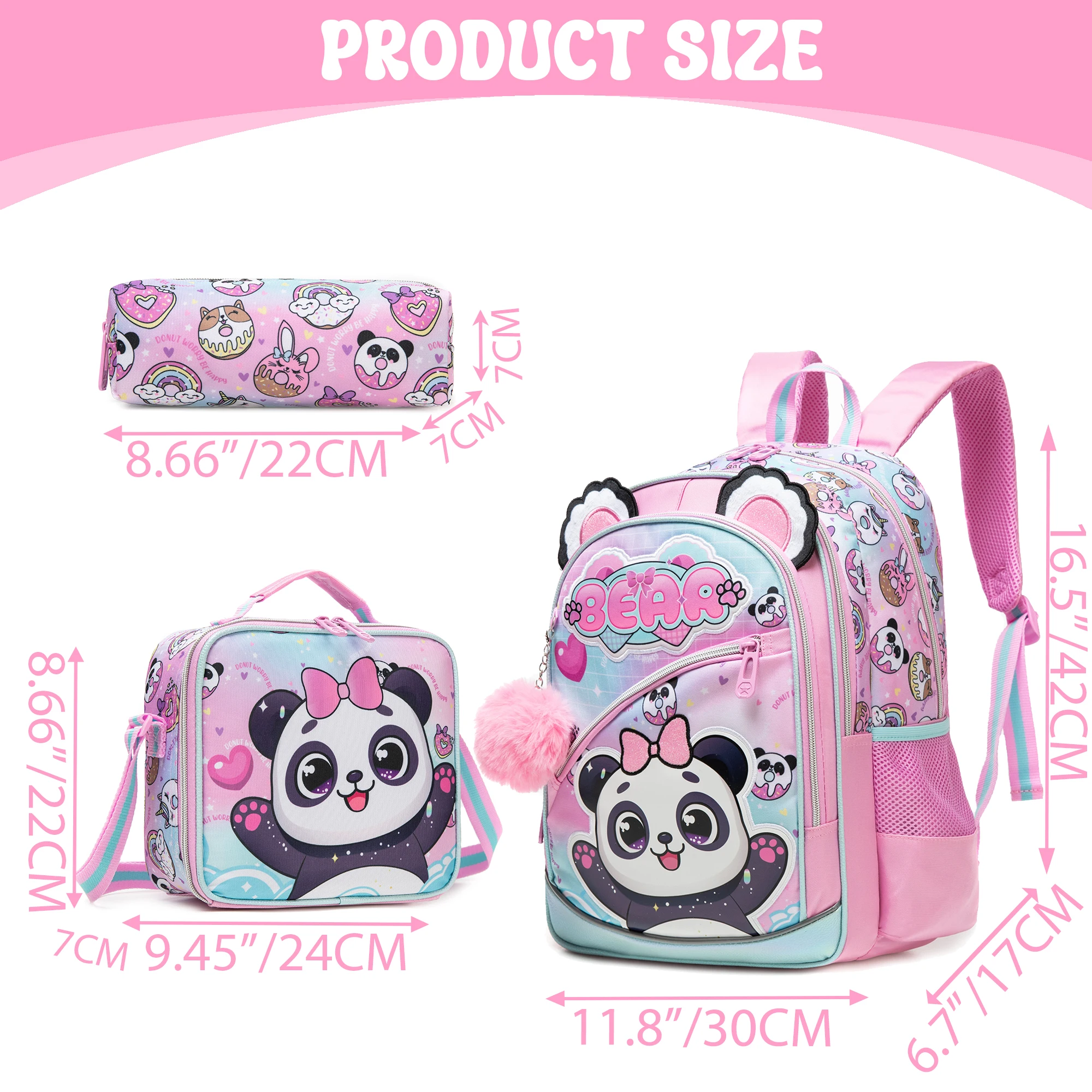[Children's Backpack Size] Backpack: 16.5"x11.8"x6.7", Lunch Bag: 9.6"x8.6"x3.5", Pencil Case: 8.6". A pendant is included. It is versatile for children and can be used to lighten the load of luggage, or as a backpack, or as a handbag with a handle on the top of the backpack.
