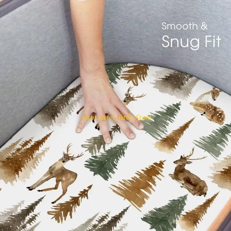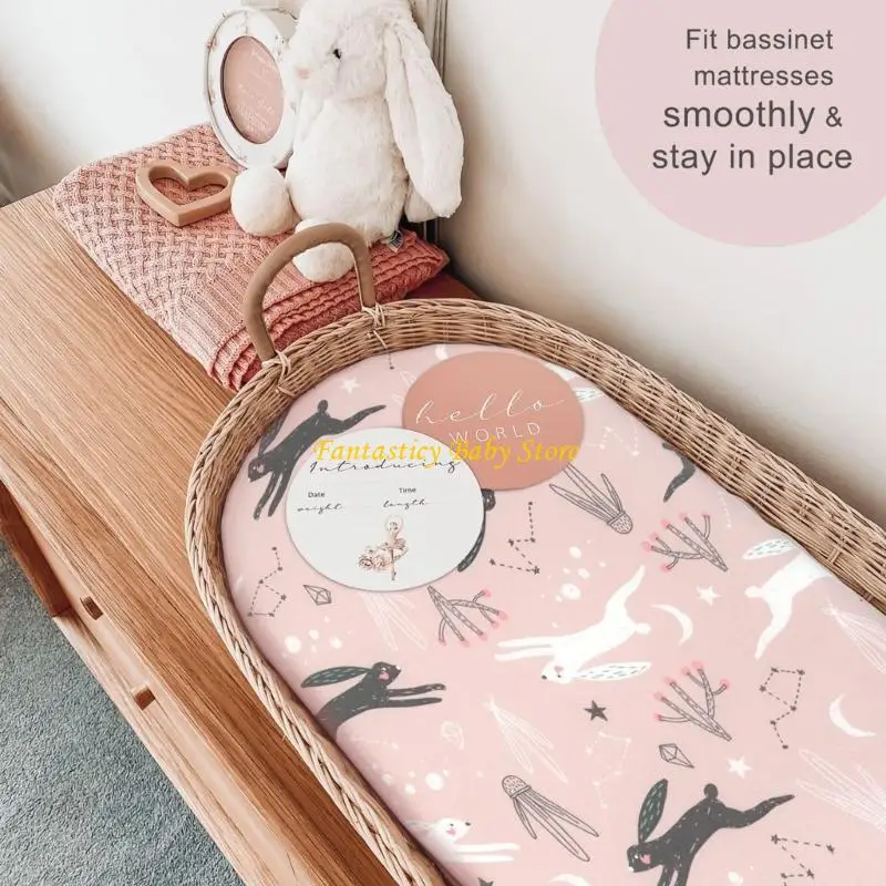 Baby Bassinet Fitted Sheet: The bassinet fitted sheet designed with elastic closure, neutral gender, cartoon print, soft and breathable fabric which comfortable for baby skin touching.